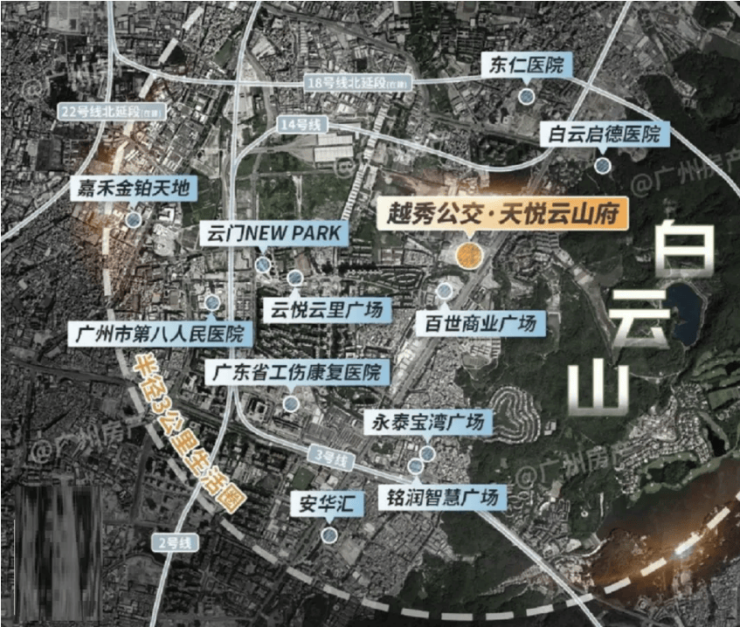 白云新城持续城市升级建设,六大城市地标配套不断落地完善,片区城市界面持续更新升级;白云山姆会员店 2026 年按期落成,商业能级大幅提升;在建地铁 18 号线加速通车,TOD 交通路网进一步完善;片区旧改持续推进,土地供应持续收紧,白云山周边住宅用地近乎绝版,稀缺价值持续放大。培英、省实名校教育资源稳定加持,学区红利长期存续;白云山生态保护力度持续加大,山景住宅价值稳步提升。广州房贷政策宽松、首付比例下调、公积金贷款利好持续释放,降低购房上车门槛,多重政策叠加加持,房产长期保值、增值潜力持续凸显。