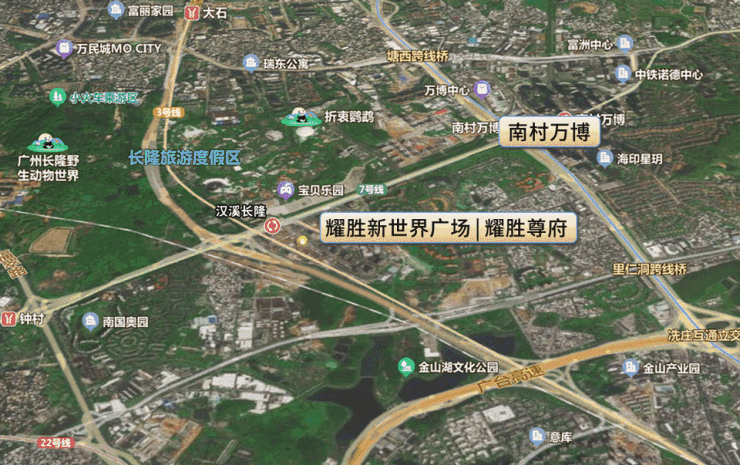 作为番禺万博-长隆商圈的地铁上盖综合体,耀胜新世界广场|耀胜尊府以“三轨交汇+港式精筑+全维配套”切入市场。它既是新世界在万博的“第二座广粤尊府”,也是广州少见的“地铁-商业-住宅”一体化综合体。
