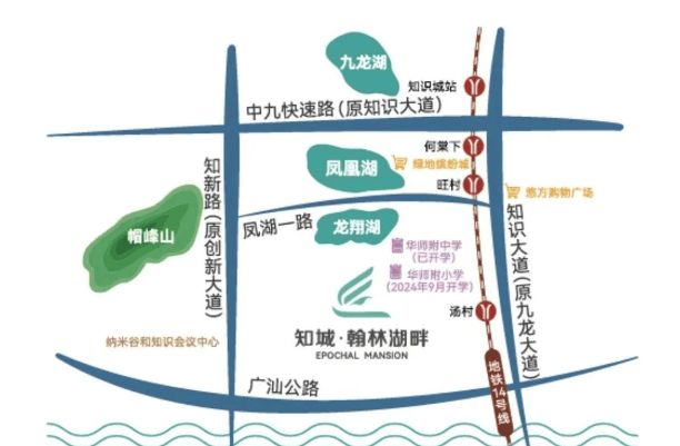 地段的价值源于产业的聚集与交通的便捷,知城·翰林湖畔花园恰好占据了这两大核心要素。项目坐落于国家级双边合作示范区——中新广州知识城的核心区域,这里不仅是广深港澳科技创新走廊的龙头,更是广州产业发展的增长极。目前,知识城已汇聚了近3700家企业,其中包括众多世界500强龙头,形成了千亿级的产业集群,吸引了大量高知精英在此安居乐业。在交通方面,项目构建了“877”立体交通网络,畅享半小时生活圈。虽然距离地铁14号线知识城支线旺村站约1300米,但通过便捷的接驳即可快速通达。更为重要的是,周边环绕着广河高速、花莞高速等7条高速公路,以及知识大道、永九快速路等7条城市快速路,加上穗莞深城际铁路、广河高铁等多条轨道交通的规划加持,让业主能够轻松连接广州市中心及粤港澳大湾区各大核心城市,实现高效通勤与便捷出行。