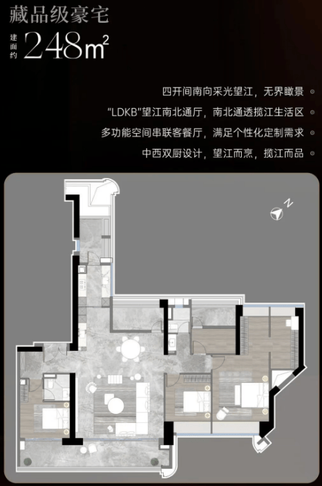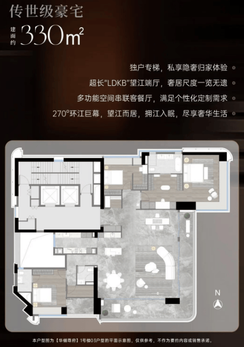 天际大平层:户型面积从248平方米到330平方米不等,专为追求高品质生活的精英家庭设计。每一户均享有开阔的视野和充足的自然光线。