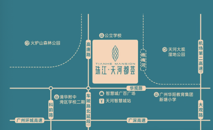 天河智慧城核心·30分钟通勤圈:位于广州“第三中轴”科创引擎,汇聚千亿级数字经济集群;距离21号线智慧城站约600米,快线3站到金融城,5站直达珠江新城,30分钟通勤圈覆盖珠金琶三大CBD。