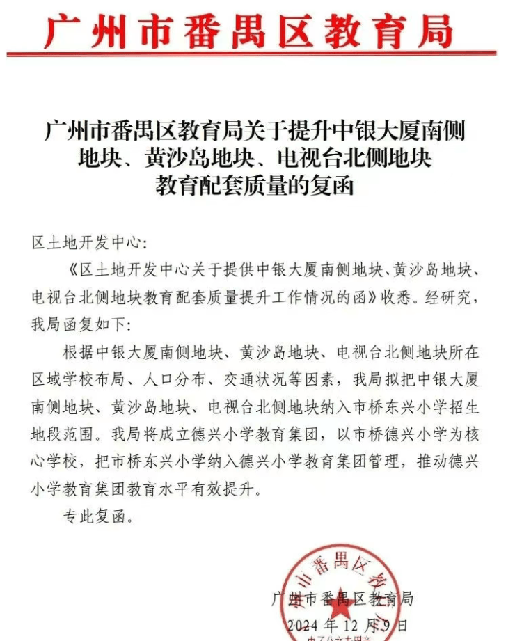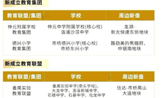 3. 番禺区新增两个教育集团,优化教育资源配置:近日,番禺区新成立仲元附属学校教育集团和德兴小学教育集团两个教育集团,同时新组建两个教育联盟,并对部分教育集团成员学校进行调整。其中,德兴小学教育集团以市桥德兴小学(省一级)为核心校,市桥东兴小学为成员校,通过教育集团化发展,促进优质教育资源均衡配置,提升区域教育质量。