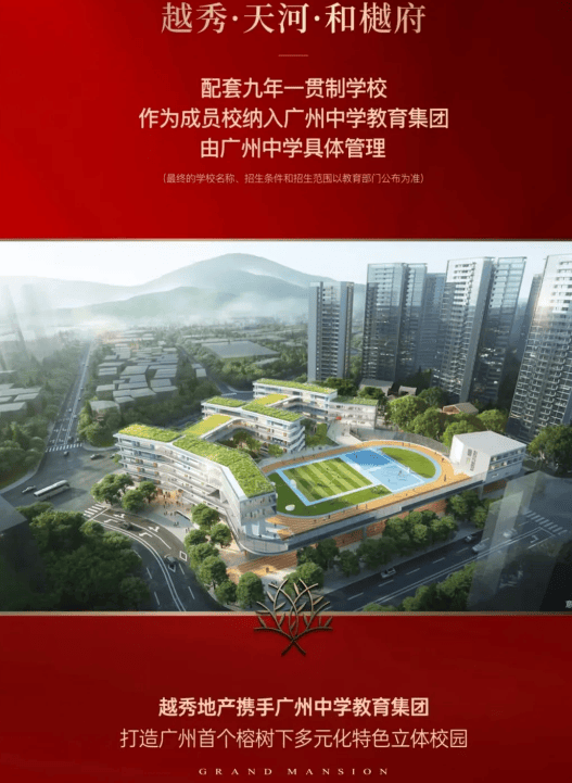 对于有教育需求的家庭而言,越秀天河和樾府的教育配套堪称 “硬核”。项目内部配建 12 班幼儿园与 45 班九年制中小学,可实现 12 年目送式教育,孩子上学无需远行,家长更省心。其中,九年制中小学作为广州中学教育集团成员,由广州中学直接管理,并得到华阳小学协助,两大省一级名校资源加持,将于 2026 年 9 月正式开学。学校不仅拥有高大的教学楼、宽敞的体育场,还在抬高的运动场底部设置了下沉式篮球场、兴趣大道、游泳馆、科技馆、艺术厅等场馆,同时计划引入 “钱学森” 班,以 “大成智慧教育” 培养 “全人格” 通才,为孩子提供优质、全面的教育环境。