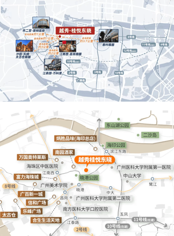 房地产界有一句至理名言:“地段,地段,还是地段。”对于越秀·桂悦东晓而言,其地段的优越性并非简单的地理位置标注,而是一种对城市核心资源的绝对占有。项目坐落于海珠区东晓路,这里不仅是老海珠的传统居住核心区,更是连接越秀、天河、琶洲等广州核心商务区的黄金枢纽。