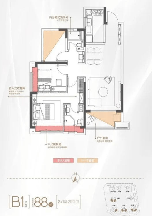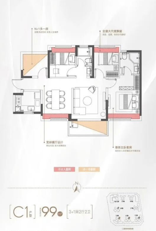 目前主推建面约88-128㎡精装三四房,均为两梯四户设计,楼间距超百米,确保每一户都能享有良好的采光与通风。户型方正实用,客厅、卧室、阳台、飘窗尺度开阔,且实现户户朝南、南北通透,真正做到了“所见即所得”的准现房交付标准。尤其值得关注的是,项目位于小区楼王C位,可俯瞰约6万平方米中央园林,景观视野极佳。