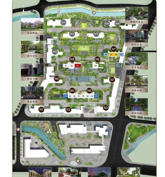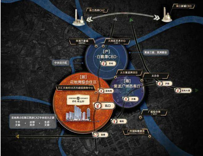 商业配套方面,广州首座万象城(在建)、双太古商业(在建)、星河 COCO Park(预计年内开业)、广船综合体(在建)、山姆会员店(规划落定)等大型商业体云集周边。东漖资产包规划约 40 万㎡亲水、无界主题商业部落,涵盖开放式街区、空中趣味生活馆、滨水商业带,为业主构建 24 小时步行可达、兼具烟火气与时尚品味的环绕式便利生活。目前已有超百家品牌商家签约进驻或意向进驻,涵盖鸭嘴兽健身、德柏威士忌餐酒吧等丰富业态。医疗资源上,广东省中医院芳村医院、荔湾区妇幼保健院等顶尖医院为业主健康保驾护航。同时,项目周边 2 条花地河滨水生活带与 8 大美景组团,历经数十稿升级改造方案,耗资超亿元,实现整体城市容貌的显著提升。此外,项目的门楼、楼铭牌、入户大堂、外立面等均采用顶级设计与工艺,彰显奢华品质。