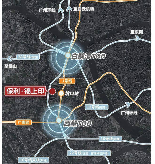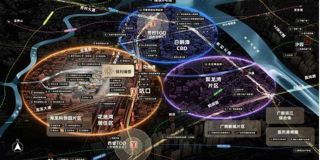 项目交通网络十分完善。距 1 号线坑口站直线距离约 880 米,步行 13 - 15 分钟可达,通过 2 站即可快速抵达双 TOD(西朗及芳村),能够迅速通达海珠、越秀等区域,畅享 30 分钟城芯生活圈。周边道路交通及公交路网同样发达,花地大道、龙溪大道、环城高速等干线环绕,为自驾出行提供了极大的便利,无论是日常通勤还是外出旅行,都能轻松实现高效出行。