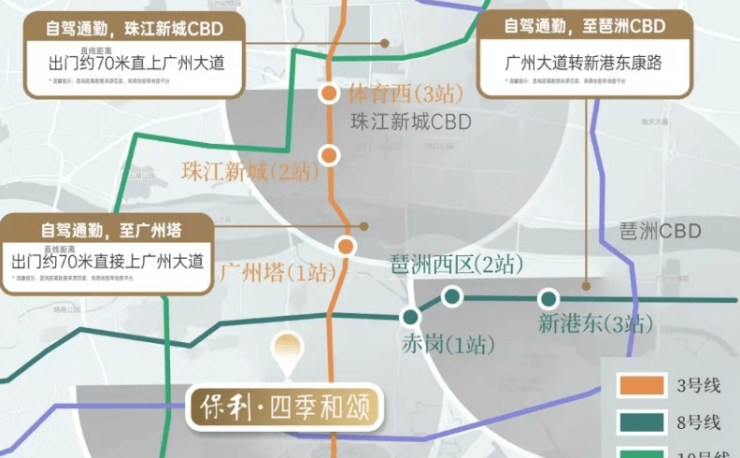 海珠保利四季和颂的交通优势不仅体现在线路多,更体现在距离近。