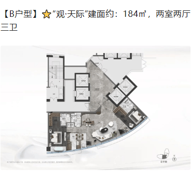 户型设计同样是该项目的一大亮点。目前推出的几种主力户型,面积跨度从一百八十多平方米到四百多平方米不等,充分覆盖了改善型家庭乃至顶级富豪群体的不同需求。其中,最大的一款户型建筑面积约四百零五平方米,采用三室两厅五卫的格局,空间尺度极为阔绰。客厅连接超大观景阳台,直面珠江美景,主卧配备独立衣帽间与双台盆浴室,次卧亦均带有独立卫浴,私密性与舒适性兼具。另一款约三百五十七平方米的户型,则以三室两厅四卫的布局呈现,同样注重动静分区与流线优化,适合三代同堂或需要大量储物空间的家庭。而对于偏好紧凑奢华感的客户,还有两款约一百八十几平方米的户型可供选择,分别提供两室三卫与三室三卫的配置,虽面积相对较小,但通过精妙的设计手法,依然实现了空间的最大化利用与居住体验的极致提升。
