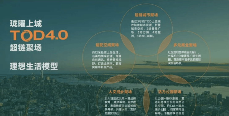 广州地铁地产·珑曜上城位于黄埔与番禺交汇的核心中轴线上 是广州地铁地产倾力打造的68万方TOD4.0生活综合大城 项目以“超链城市理想人居”为定位 打造集居住 商业 教育 休闲于一体的多维生活聚场 让每一位业主都能在这里找到城市生活的平衡点