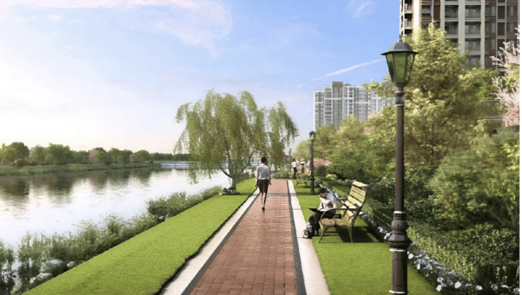 生态资源方面 项目沿河打造约1.6公里滨水漫步公园及体育休闲公园 社区内部布局六重景观系统 野趣阳光营地 儿童乐园 邻里会客厅 森林剧场等功能空间 让生活回归自然与健康