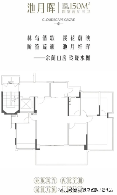 户型区间:建面约150-175㎡纯板式洋房,主力户型为4房3卫双主套设计,部分顶层为复式户型(最大约200-300㎡),阳台进深约2.4-3米,可打造“空中小院”或景观露台,满足改善家庭多元居住需求;
