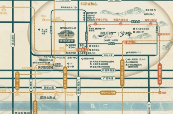 尽管坐拥静谧山林,星河湾半山却丝毫不缺城市便利。项目位于玉岩大道与香雪大道交汇处,自驾出行极为便捷,周边汇聚开源大道、开创大道等城市主干道,快速接驳科学城、天河智慧城等核心板块。
