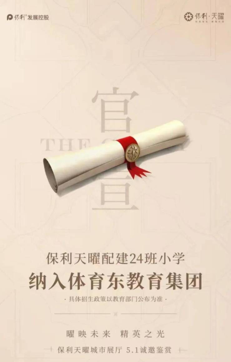 1,自带9年教育资源,官宣!天曜配建24班小学,纳入体育东教育集团720地块将配建一所6班幼儿园,能填补天河地区学位预警的需求。