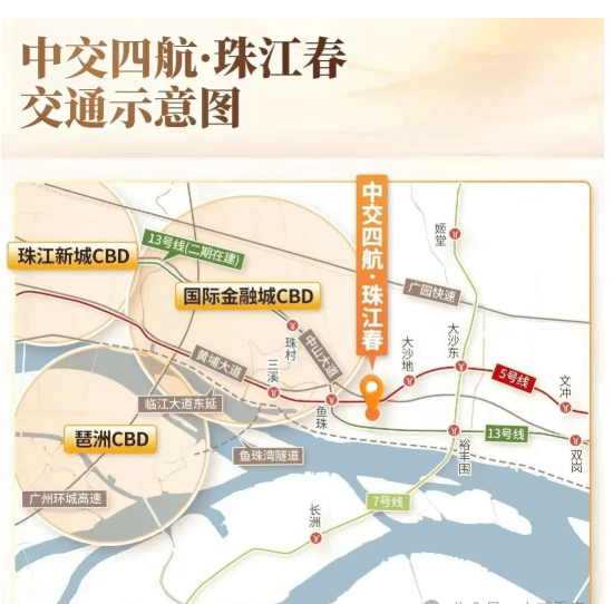 中交四航・珠江春坐拥鱼珠 “地铁 + 隧道 + 快速路 + 高速” 多维交通路网,为改善家庭提供高效出行选择,无缝衔接珠金琶。项目距地铁 5 号线鱼珠站仅 1 公里(步行 12 分钟),1 站换乘 13 号线二期(2025 年开通,直达珠江新城);自驾方面,临江大道东延段(2025 年开通)10 分钟直达金融城,鱼珠隧道(2025 年下半年完工)15 分钟到琶洲,广深高速、环城高速接驳珠三角各市;未来还可通过城际交通快速抵达白云机场、广州南站。长远来看,经广州南站 1.5 小时可达深圳、东莞,3 小时链接长三角,无论是日常通勤(地铁 + 隧道为主)还是跨城商务,皆能以 “多维路网” 平衡效率,适配珠金琶沿线上班族的高端出行需求。