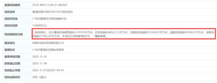 根据最新备案信息,该项目总占地面积约4.45万平方米,其中可建设用地仅1.74万平方米,绿地面积却高达1.8万平方米,绿化率接近50%,真正实现“一半住宅、一半公园”的生态布局。项目规划新建9栋住宅及1幢配套楼,采用“北高南低”的错落排布,最大化保障中后排单位的江景视野。建筑限高24米,结合1.1容积率,几乎锁定了叠拼或类独栋产品的形态。整个项目预计2025年11月动工,2027年4月交付,由绿城华南投资发展有限公司全资操盘,并已迅速成立专属项目公司,显示出极高的开发效率与战略重视度。