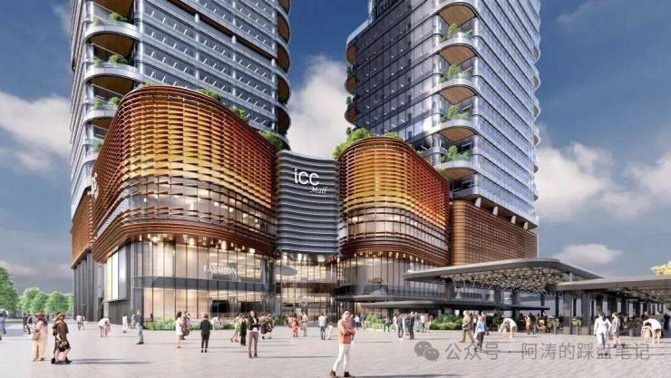 2⃣规划理念:全球第五座ICC,对标香港环球贸易广场(香港ICC),采取“东商务、西交通”总体布局,集顶级商场、五星级酒店、甲级写字楼、高端住宅、星级服务式公寓及公共交通设施于一体的全业态综合体