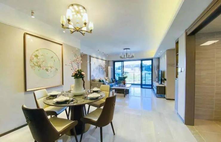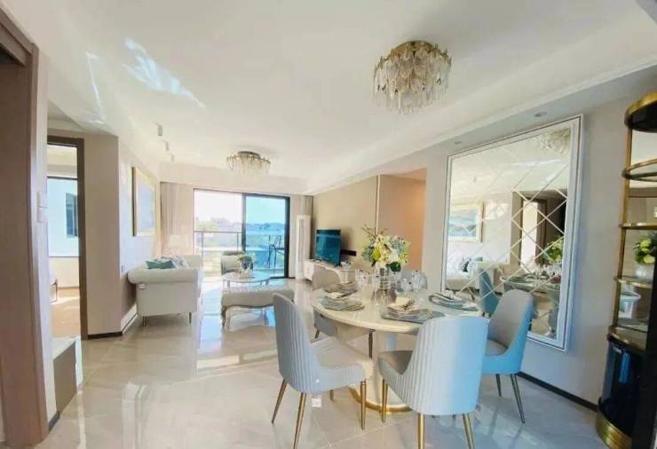 此外,餐厅、客厅还与两个阳台相连,可打造出一个“全面屏”大厅,无论是待客、休闲还是家庭欢聚,都能很好容纳。