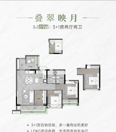 项目规划建面约78㎡、89㎡、118㎡、140㎡全周期户型产品,覆盖刚需入门、进阶改善、品质大四居多元需求,户型设计贴合广州本土家庭居住习惯,整体方正通透,空间规划合理,做到动静分区清晰,同时整体空间使用率超100%,拓展空间充足,性价比优势显著,从格局规划、采光通风、空间利用率、居家实用性、居住舒适度、尺度感、私密性、人性化设计八大维度,全方位打磨产品力。建面约78㎡刚需入门户型,紧凑合理,格局方正,小户型低门槛入主天河主城,精准适配年轻刚需、单身置业、双人自住群体。户型做到全明空间设计,采光面充足,日常通风流畅,适配岭南气候特点,有效保持室内干爽通透;动线规划合理,生活区与休憩区科学划分,减少日常动线交叉,提升居家私密性;搭配灵动拓展空间,超高使用率优化小户型居住局促问题,满足日常起居、收纳储物、居家社交基础需求,低门槛抢占天河低密湖山住区资源。建面约89㎡主力刚需进阶户型,为片区主流黄金面积段,性价比突出,适配三口之家、刚需进阶家庭。采用LDKG一体化客餐厅设计,客厅、餐厅、阳台无缝衔接,拉伸整体空间视觉尺度,居家社交、家庭聚餐、休闲互动场景融合,空间利用率大幅提升;双面宽阳台设计,兼顾观景、晾晒、休闲多重功能,一面拥抱社区园林景致,一面收纳日常烟火;卧室布局规整,主卧独立空间静谧舒适,次卧尺度适宜,满足孩童居住、老人暂住、书房改造等多元需求,干湿分离卫浴设计,优化居家居住细节,日常使用便捷整洁。建面约118㎡舒适改善户型,空间尺度全面升级,专为二胎家庭、三代同堂改善客群打造。大面宽南向布局,全屋通透采光,全天候日照充足,观景视野开阔;阔绰横厅格局,空间舒展大气,提升居家品质感;多卧室规划,功能分区完善,独立主卧套房配置,保障居者私密居住体验;大面积拓展空间,可灵活改造书房、衣帽间、休闲室,适配家庭结构变化,长期居住无压力。建面约140㎡品质大四居,高阶改善首选,圈层属性纯粹。超大面宽设计,全景采光通透,坐拥园林与湖山双重景观视野;奢阔尺度空间,全屋功能分区明确,社交空间与私密休憩空间完美分离;高端户型配置,独立玄关增强入户仪式感,双卫搭配优化早晚高峰使用需求,超高得房率加持,打造宽境理想人居。所有户型均规避空间浪费,细节处植入人性化设计,飘窗、拓展空间等实用配置丰富,户型示意图仅作参考,最终交付标准与空间尺寸以商品房买卖合同约定为准。