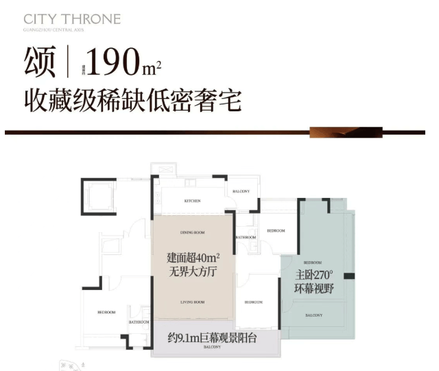 建面约190㎡大平层(2梯2户),层高3.1米,奢阔尺度尽显气度;