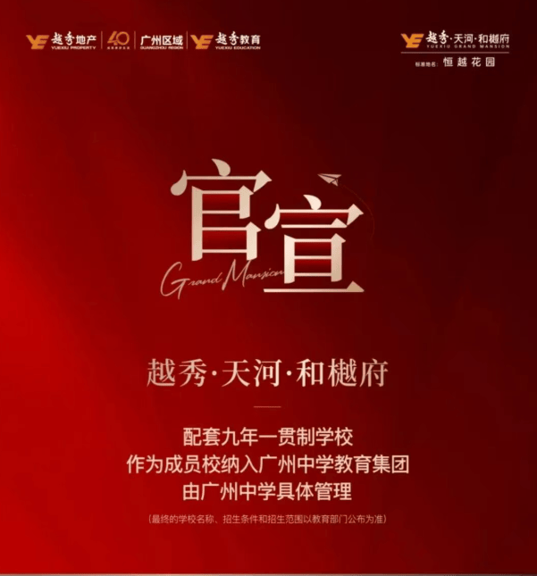 项目虽未自建中小学,但紧邻的天河和樾府已配建一所45班九年一贯制学校,并纳入广州中学教育集团,由广州中学负责筹建管理,华阳小学参与办学。两小区合计约2000户,学位供给充足,子女教育无忧。