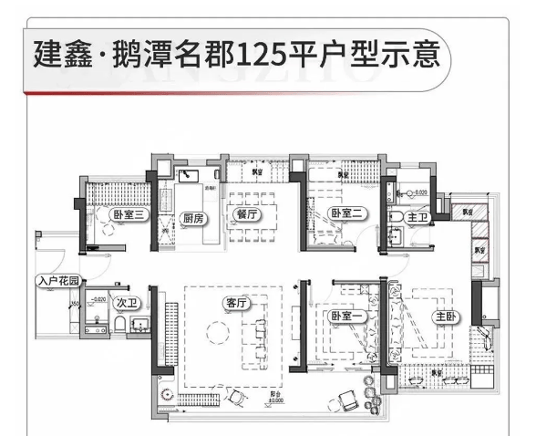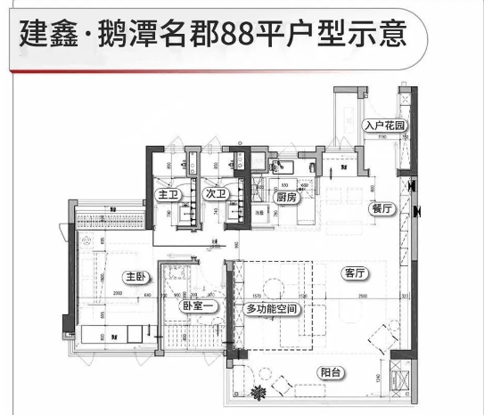 项目主打建面约 88-125㎡户型,均为 T5 风车型全南向规划布局,且采用新规设计,得房率超 100%,完美契合市场对 “爆款小户型” 的需求。户型设计注重采光与空间利用,所有户型均配备入户花园与超大飘窗:88㎡户型阳台开间约 6.2 米,105㎡户型阳台开间约 6.5 米,125㎡户型阳台更是达到 8.3 米,阔绰阳台可尽揽园林或江景视野;无论是刚需家庭还是改善群体,都能在其中找到空间尺度与居住舒适度兼具的选择,部分户型还可享受江景资源,提升居住体验。