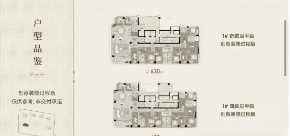 项目面积段约为 205-640 平。如 1# 楼 35 层高,为约 630㎡户型;3# 楼 50 层高,有 205-236㎡户型等。项目整体排布北高南低,呈半月型布局,通过前高后低的设计及后排楼的扭转,实现了 100% 望江。