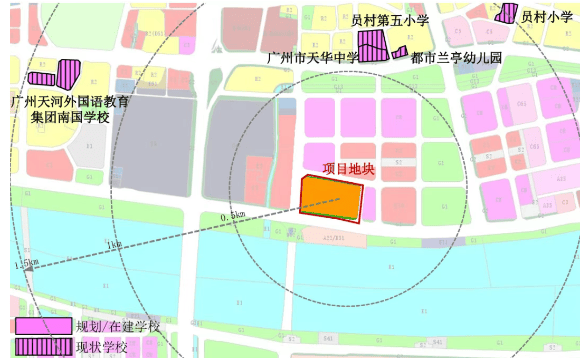 项目位于金融城西区桥头堡,临江大道北侧,与珠江新城直线距离仅约 600 米,汇悦台以东 600 米。东北侧 300 米处就是广州地铁 5 号线与 11 号线交汇的员村站。周边 3 公里内国际商业汇集,有 K11、天德广场等,5 公里内有广州图书馆、广东省博物馆等人文设施,还有中山大学附属第六医院等医疗资源保驾护航。