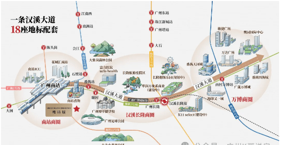 万科・檐屿城位于广州南站商务区,虽距离 2 号线、7 号线地铁广州南站约 1.5 公里,但小区有公交车和楼巴接驳。2025 年,22 号线(后通段)开通,5 站直达白鹅潭 CBD;广佛环线东环开通,3 站到琶洲;东晓南路 - 广州南站连接线南段与海珠湾隧道建成通车,15 分钟连通海珠城区,30 分钟畅达珠江新城 CBD。以广州南站为中枢,构建 “15 轨立体枢纽”,实现湾区 1 小时通勤。