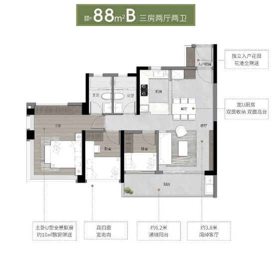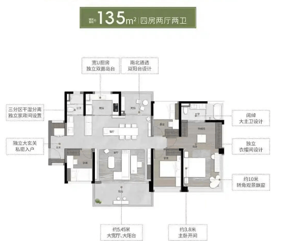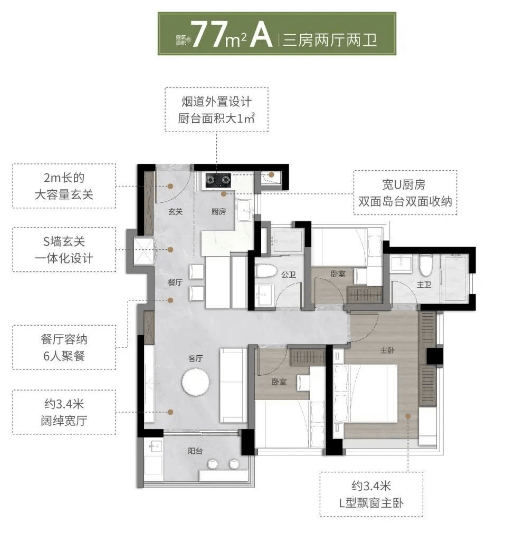 在售建面约 77 - 135㎡三至四房,使用率约 127 - 137%,阳台占比可达 20%。万科通过客户调研,推出 14 种变异户型,满足不同需求。如 77㎡A 户型三面宽南向,客厅采用 LDK 公区方案;88㎡B 户型主卧带步入式衣帽间,客厅开间 3.9 米,采用 LDKG 一体化设计;135㎡户型南北通透双阳台,宽厅与阳台尺寸阔绰。