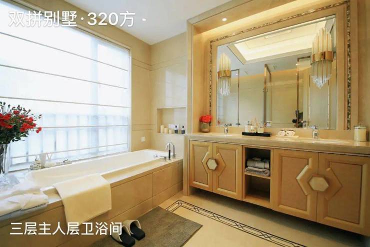 三层:专属全层主人层,包含前厅 + 主卧 + 超大衣帽间 + 五件套卫生间 + 休闲露台 + 观景阳台。主人层整层专属,私密性与尊贵感拉满;主卧面积超 40㎡,奢华大气;衣帽间超 15㎡,分区明确;卫生间配备双台盆、智能马桶、恒温淋浴、按摩浴缸、独立桑拿房,顶配配置;双露台设计,面积约 30㎡,观湖赏园,尽享私密尊崇。