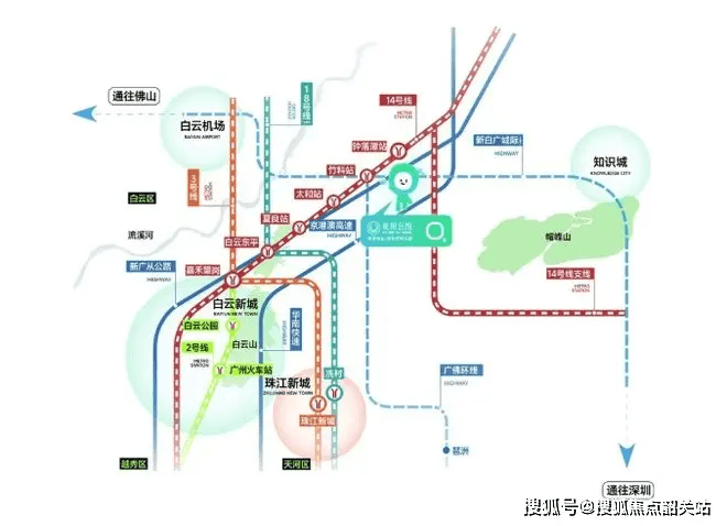 保利珑玥公馆紧邻地铁14号线钟落潭站,直线距离仅500米(实测步行8分钟)。通过14号线,30分钟直达珠江新城,25分钟到嘉禾望岗换乘2/3号线;未来新白广城际(2026年通车)将串联广州北站、白云机场、新塘TOD,形成“空铁联运”网络,从项目到白云机场仅需15分钟车程。