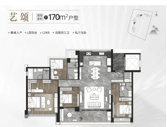 户型设计:126-170㎡精装大宅,尊梯入户 + LDKB 一体化