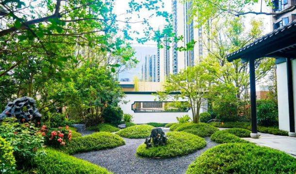二重景・凤台花影:灵感源自凤凰山凤台揽月。越过照壁,沿着长廊踱步至观景平台,即可欣赏到枯山水庭院。假石、平砂、乌桕、红枫与铁冬青错落有致地分布其中,花光月影与扇窗折墙相互映衬,营造出如诗如画的景观氛围,为居者带来独特的视觉享受。售楼处电话:4009909752 。