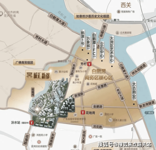 项目地处荔湾茶滘板块,紧邻花地河,属白鹅潭 CBD 核心辐射区。交通配套方面:目前依赖公交 + 自驾,楼下茶滘总站 106 路 3 站直达 1 号线芳村站,接驳越秀、天河;远期规划 25 号线汾水站(距项目 600 米),未来 1 站到花地湾;自驾可通过茶滘路、花地大道接驳内环,30 分钟直达海珠、天河。虽暂无近地铁,但公交接驳便捷,规划线路将进一步提升通勤效率。