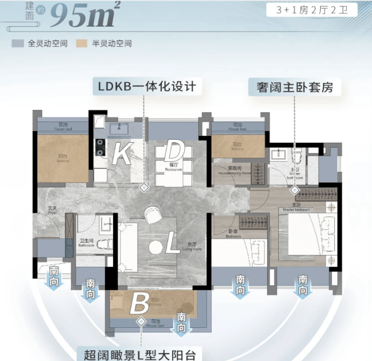 赠送空间丰富,轻松实现四房布局,满足二胎家庭、三代同堂需求