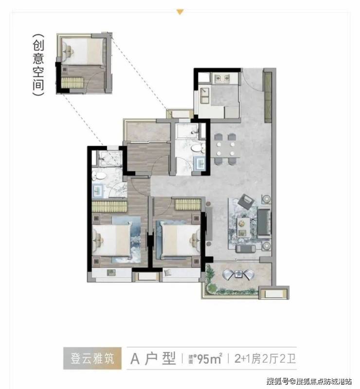 125㎡五房:双主套设计,独立电梯入户,总价450万起。