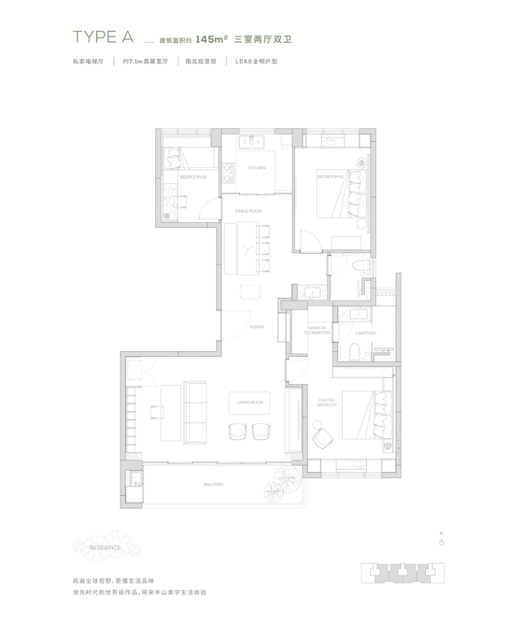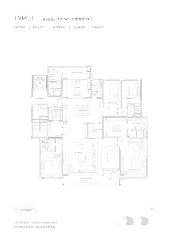 A4:145-315㎡半山美宅,私家电梯厅、270度观景阳台、高层高及高赠送面积,空间舒适、动线流畅。