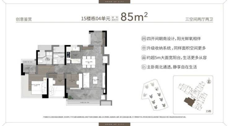 适合年轻人、改善型家庭及投资者,全南向三至四房户型设计兼顾舒适与实用性。