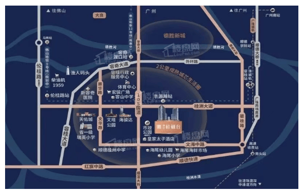 跨城通勤:依托“一城轨(广珠城轨容桂站)、三高速(广珠西线、东新高速、碧桂路)、三地铁(佛山11号线规划、广州26号线规划、佛山13号线规划)”网络,未来可快速接入广佛都市圈。