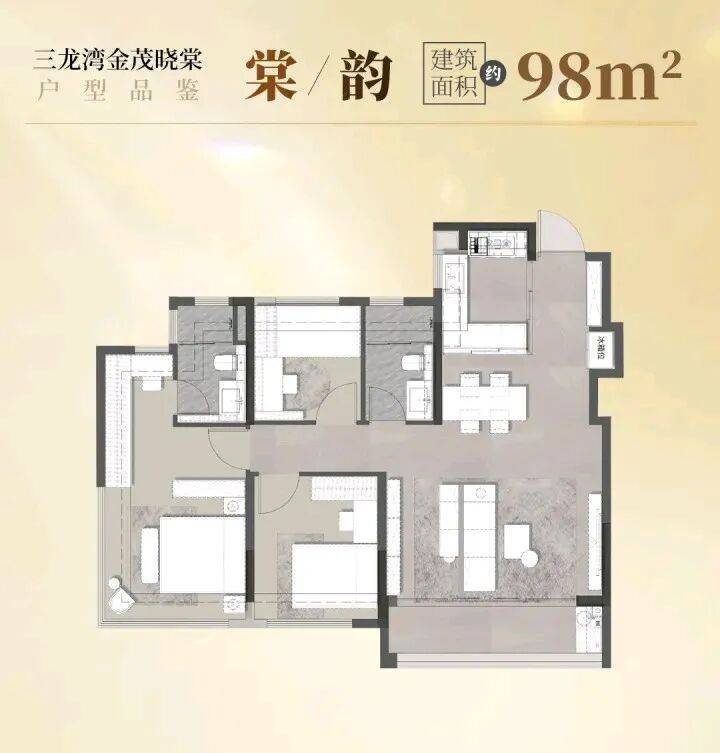 建面约 98㎡三房两厅两卫 —— 刚需优选,实用满分