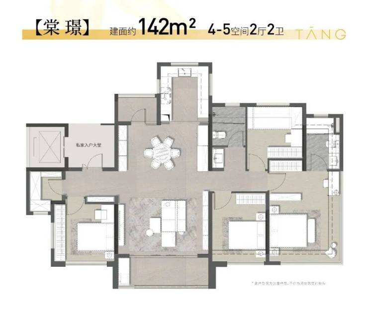建面约 142㎡四房两厅三卫 —— 改善顶奢,专梯专户