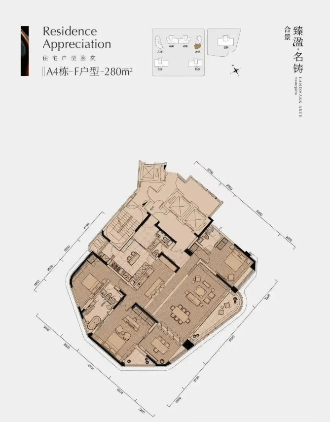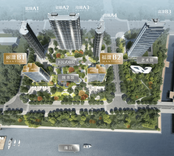 合景臻溋名铸位于广州天河金融城板块核心位置,是该区域内一座标志性的顶级豪宅项目。项目由4栋24层高的住宅楼、3栋商业楼和1处文化室组成,提供约280-760平方米的大平层户型,享有360°南向无遮挡的一线江景。其中B1、B2已完成竣备,现推出322-402平方米的江景大平层准现楼在售,A4栋住宅也将于今年完成交付。