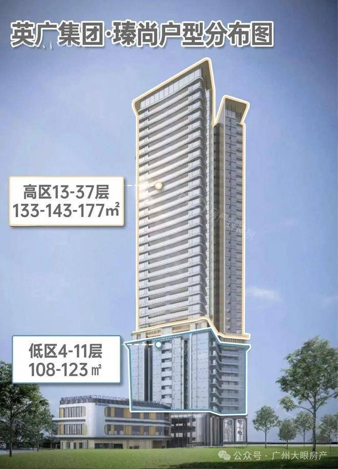户型设计上,瑧尚走高端酒店式路线。大堂挑空约8米,搭配奢石材质,空间感极强,延续了香港豪宅的阔气风格。外立面用大面积玻璃幕墙结合银色新型铝板,整体看起来流畅大气。项目采用高低区布局,低区4-11层主推108-123㎡三四房,适合刚需改善群体;高区13-37层主推133-143-177㎡四房,专为高端改善量身打造。其中133㎡北向可看白云山,143㎡西南朝向采光好,177㎡东南向视野更开阔。整栋5部电梯,低区2部、高区3部,双开门设计,日常等梯体验接近酒店级别。