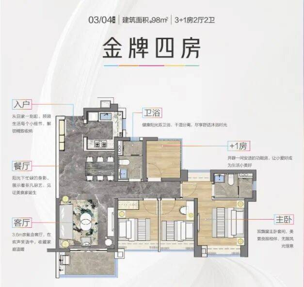 建面约98平方米户型:预计为三房两厅两卫设计,客厅与餐厅相连,营造开阔的活动空间。卧室注重私密性与实用性,或许配有飘窗,增加采光与观景视野。
