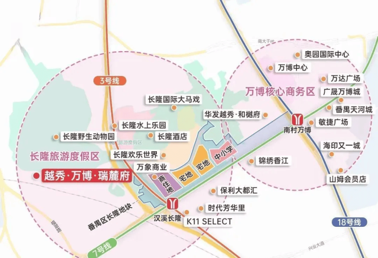 越秀·万博·瑞麓府地理位置优越,坐落于广州番禺长隆动物世界的西南侧,西侧靠近钟顺路,处于长隆万博CBD的核心辐射范围内。随着万博正式扩容为长隆万博CBD,区域规模由原来的1.5平方公里扩大至7.2平方公里,赶超珠江新城的6.19平方公里,形成“北天河南番禺”的双格局,项目也因此尽享区域发展红利。