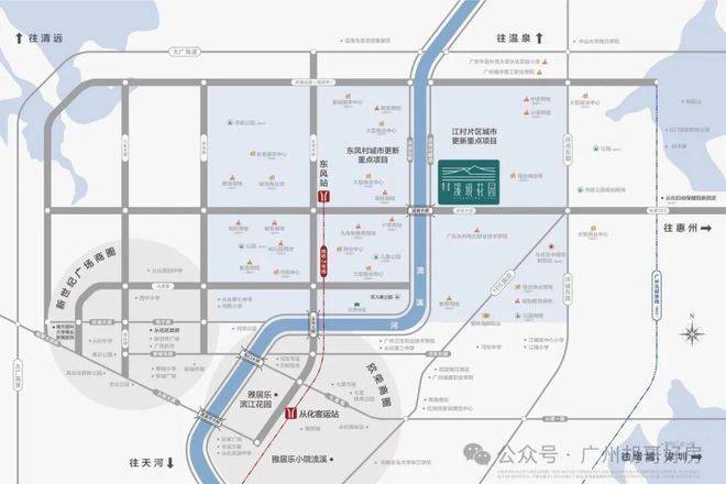 项目地处从化北部新区核心起步区,紧邻城市更新重点区域东风村与江村片区,周边规划丰富的教育、商业及市政设施,为业主提供便捷生活与优质公共服务。东风村作为生态枢纽和滨河智慧城,总投资约71亿元,规划超244个市政生活配套项目,包括16所学校及9个大型商业中心,形成多功能城市综合体。江村片区则以“一轴两心两廊”规划理念,配建54班制小学及配套中心、市政公园及多个综合商业体,旨在打造集教育、生活、休闲为一体的山水生态健康宜居示范区。项目享受城市更新带来的发展红利,同时坐拥流溪河畔自然景观,为生活注入生态活力与灵动气息。
