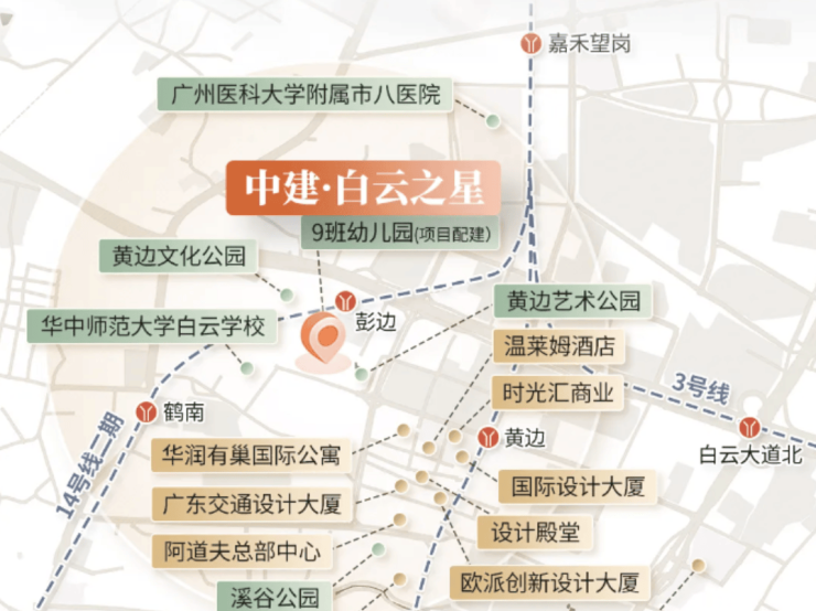 中建·白云之星坐落于白云新城核心区域,依托广州设计之都板块及黄边社区旧改优势,由中建三局携手白云城投共同开发,立足高端改善型市场。项目以高标准建筑设计、超高使用率户型及完善的生活配套,致力于为追求高品质生活的家庭提供宜居选择。本文将从区位及产业价值、交通配套、教育资源、生活配套、生态与休闲、建筑设计与户型、楼盘优缺点及购房参考八个方面进行详细分析。