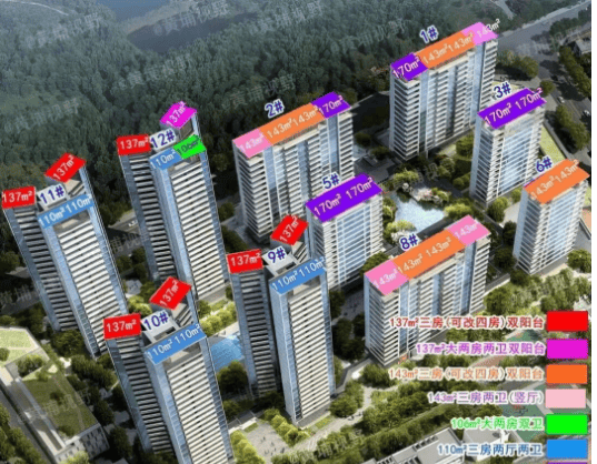 项目二期由6栋板楼和4栋点式塔楼组合布局,目前多个楼栋均有房源在售,选择丰富。其中,1-1栋为15层,2梯2户设计,在售141㎡、143㎡、173㎡户型;2-1栋、2-2栋为15层,2梯2户,主推143㎡、173㎡现房;3栋为14层,2梯2户,在售两户174㎡加推现房;5栋、6栋、8-1栋、8-2栋均为14层,2梯2户设计,分别有173㎡、143㎡、141㎡等户型现房待售或在售。