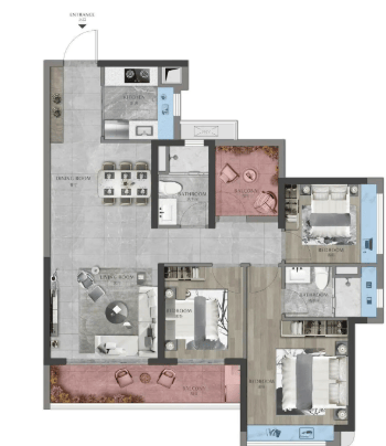项目内的户型设计多样,从105平米至345平米不等,涵盖了三房至五房的不同户型,面积段广泛,能够满足不同家庭的需求。每个户型都经过精心设计,既保证了空间的最大化利用,又兼顾了居住的舒适度和私密性。